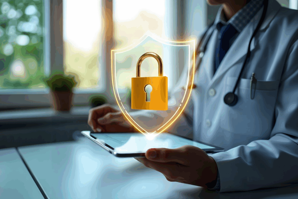 Alt text: Secure AI medical scribe ensuring HIPAA-compliant documentation for telehealth visits